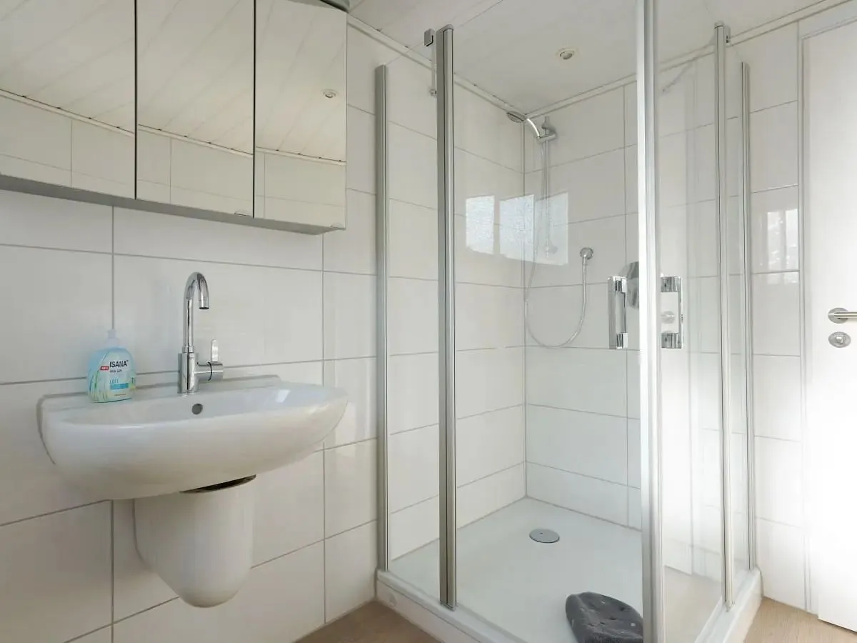 Badezimmer mit Dusche, WC und Handtuchheizung