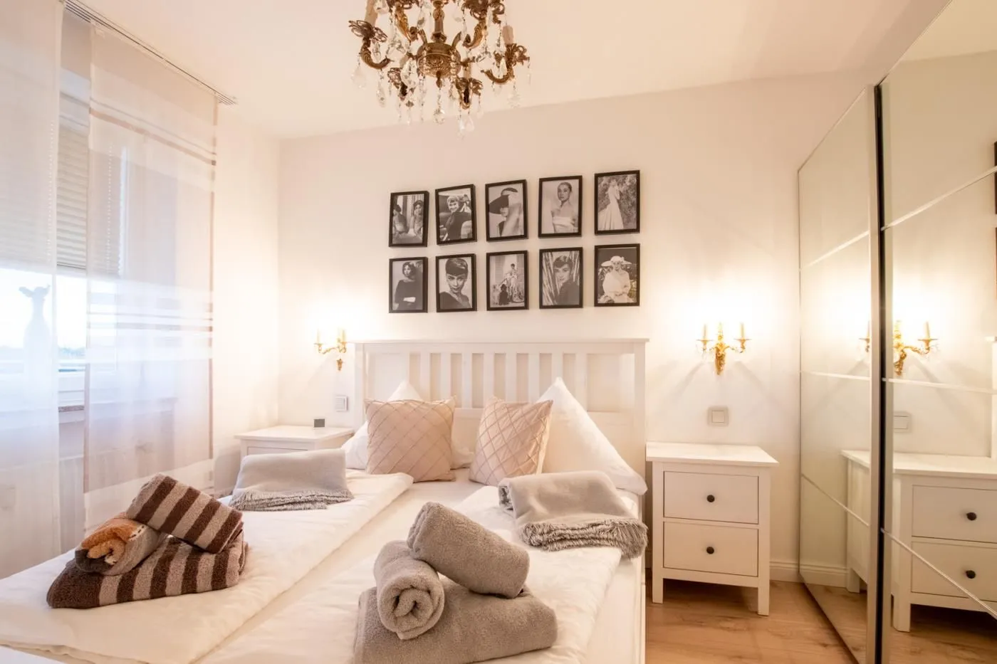 Komfortables Schlafzimmer mit Doppelbett, Nachttischen und Kleiderschrank.