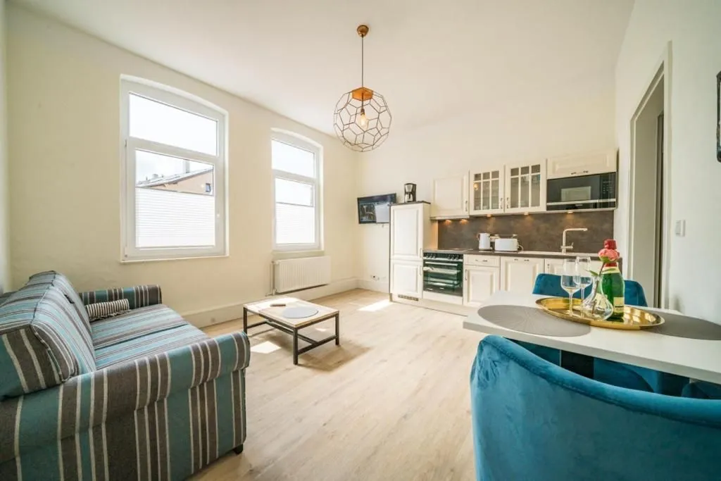 Die Villa Sofia in Ostfriesland bietet Ihnen einen stilvollen Rückzugsort auf Borkum, nur 100 Meter von dem feinen Sandstrand entfernt. Die im ersten Stock gelegene Unterkunft ist etwa 45 Quadratmeter groß und überzeugt durch ihre klare Raumaufteilung: Mit insgesamt zwei Zimmern – darunter ein separates Schlafzimmer – eignet sie sich für bis zu vier Personen. Die Villa Sofia richtet sich insbesondere an Paare oder kleine Familien, die Wert auf Komfort und eine angenehme Atmosphäre legen.